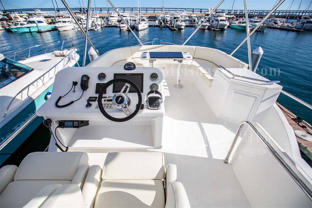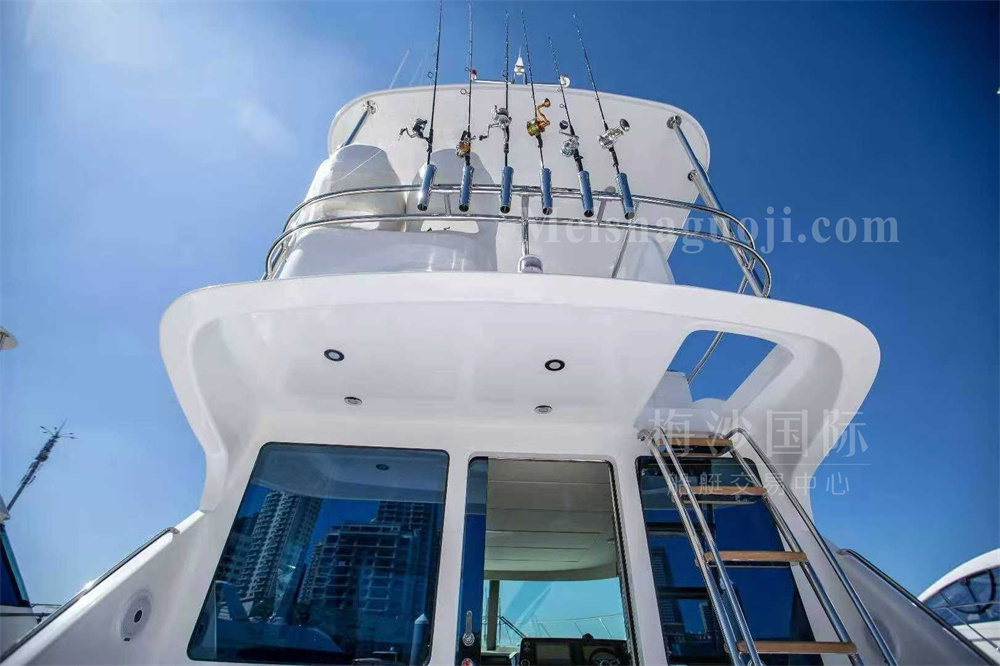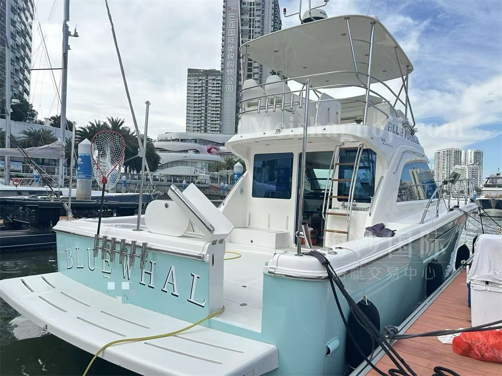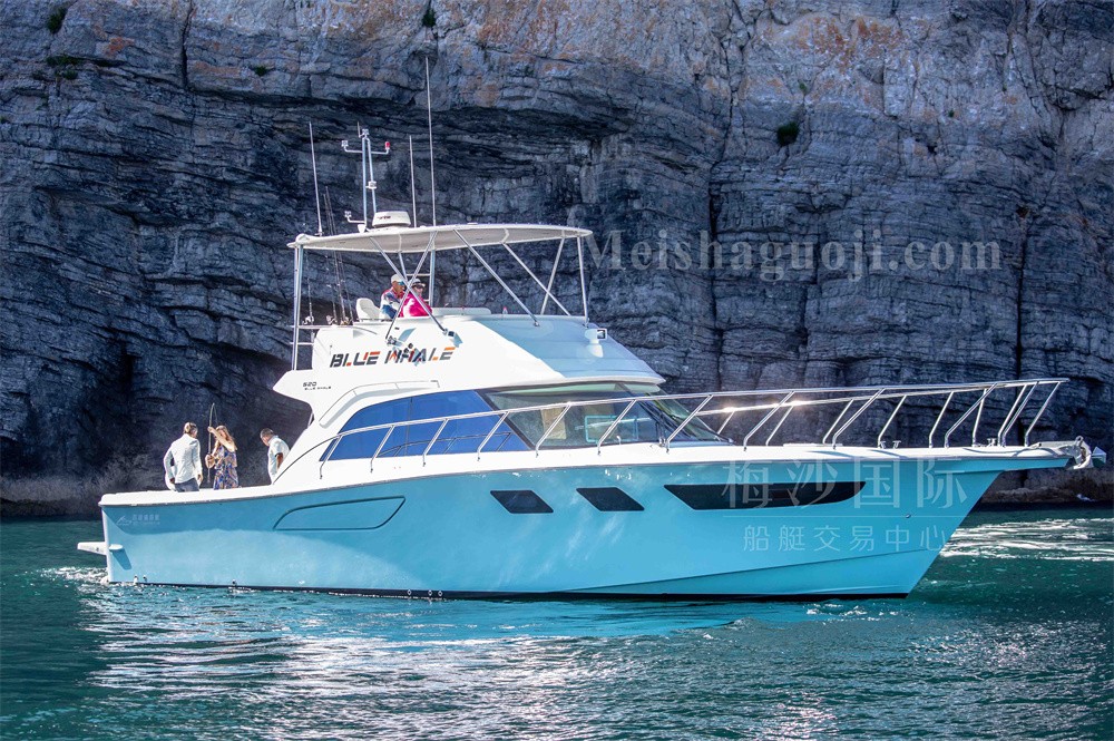 2021年产52尺百路威飞桥钓鱼艇,长:15.25米,宽:5米,两台VOLVO发动机共1450匹马力,使用2039小时,最高航速可达28节,燃油舱容:2800升,淡水舱容:300升,配备飞桥双驾驶台,专业钓舱