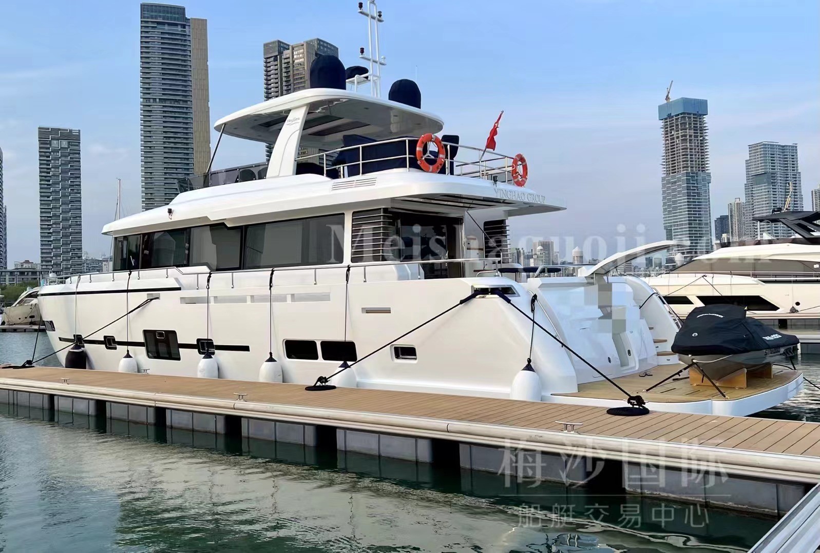 2022年产76尺豪华游艇,长:23.16米,宽:5.80米,两台VOLVO发动机共2000匹马力,使用430小时,最高航速:24节,续航能力:12小时,燃油舱:4000升,淡水舱:1000升,四个房间三个洗手间,CCS三证齐全可全国过户。