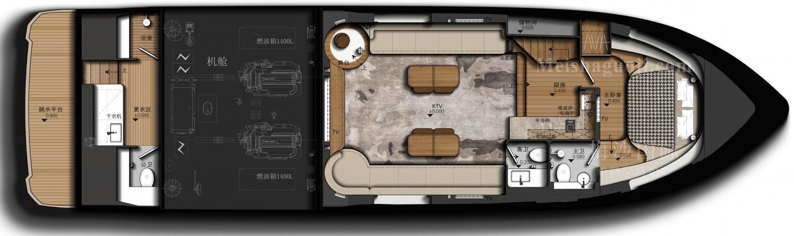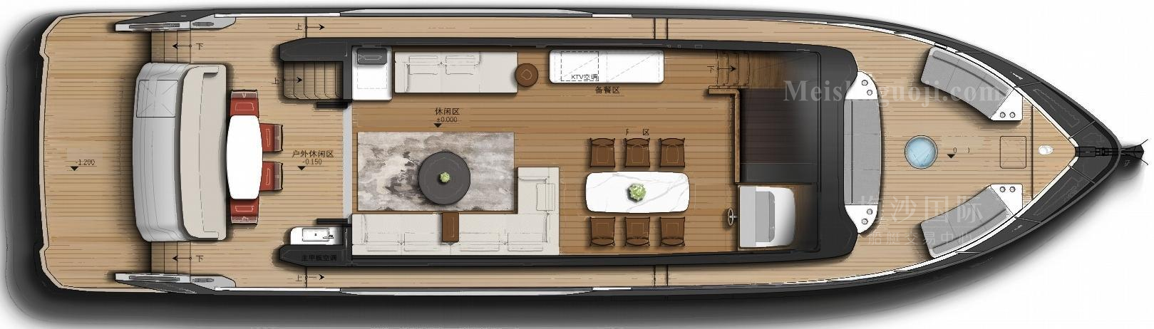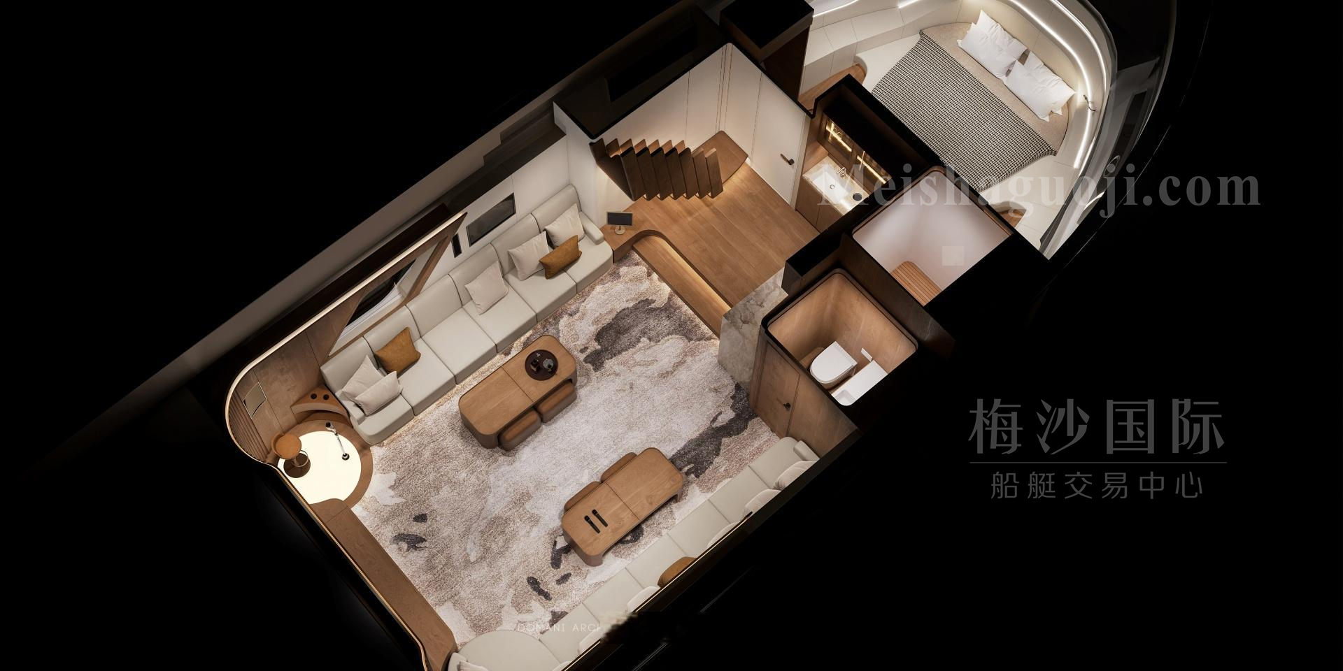 新船现货:AYANA 68尺豪华游艇,长:20.6米,宽:5.53米,两台潍柴发动机共1200匹马力,燃油舱容:2800升,淡水舱容:1000升,一个房间两个洗手间带超大KTV包房和独立厨房