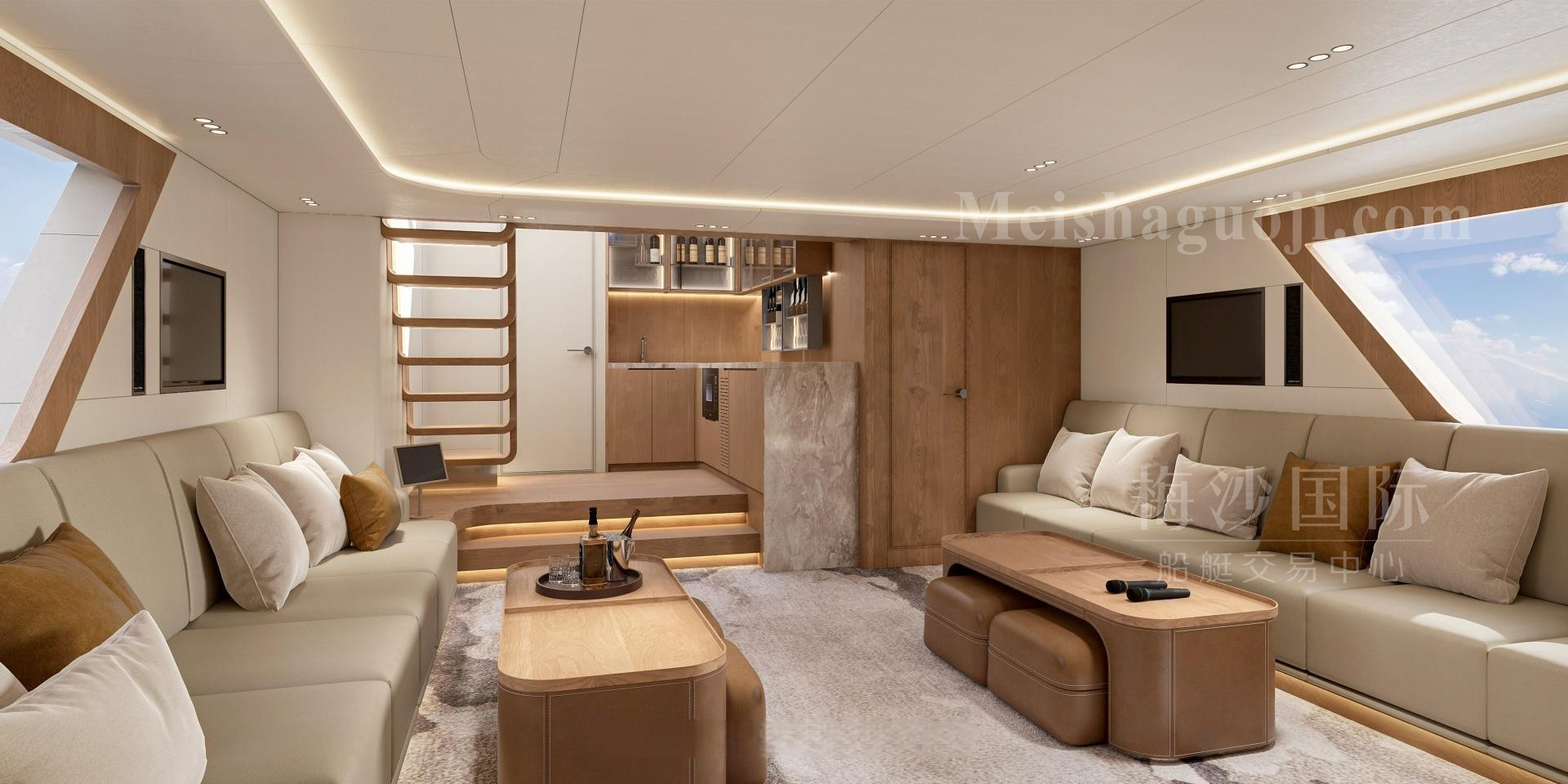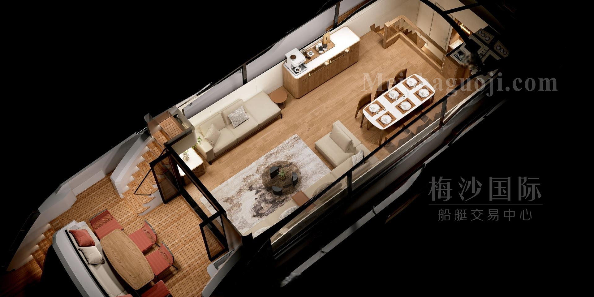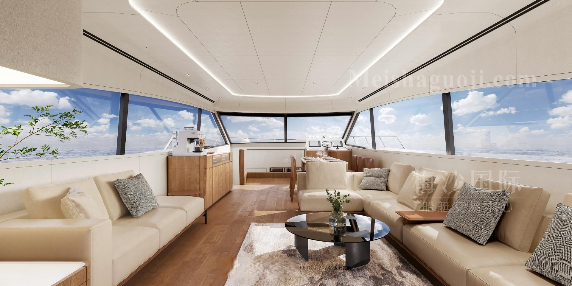 新船现货:AYANA 68尺豪华游艇,长:20.6米,宽:5.53米,两台潍柴发动机共1200匹马力,燃油舱容:2800升,淡水舱容:1000升,一个房间两个洗手间带超大KTV包房和独立厨房