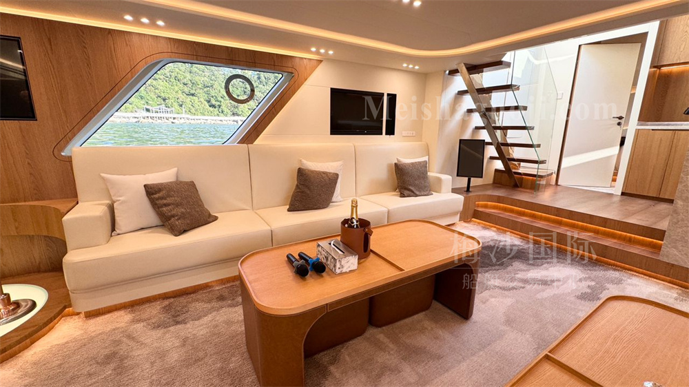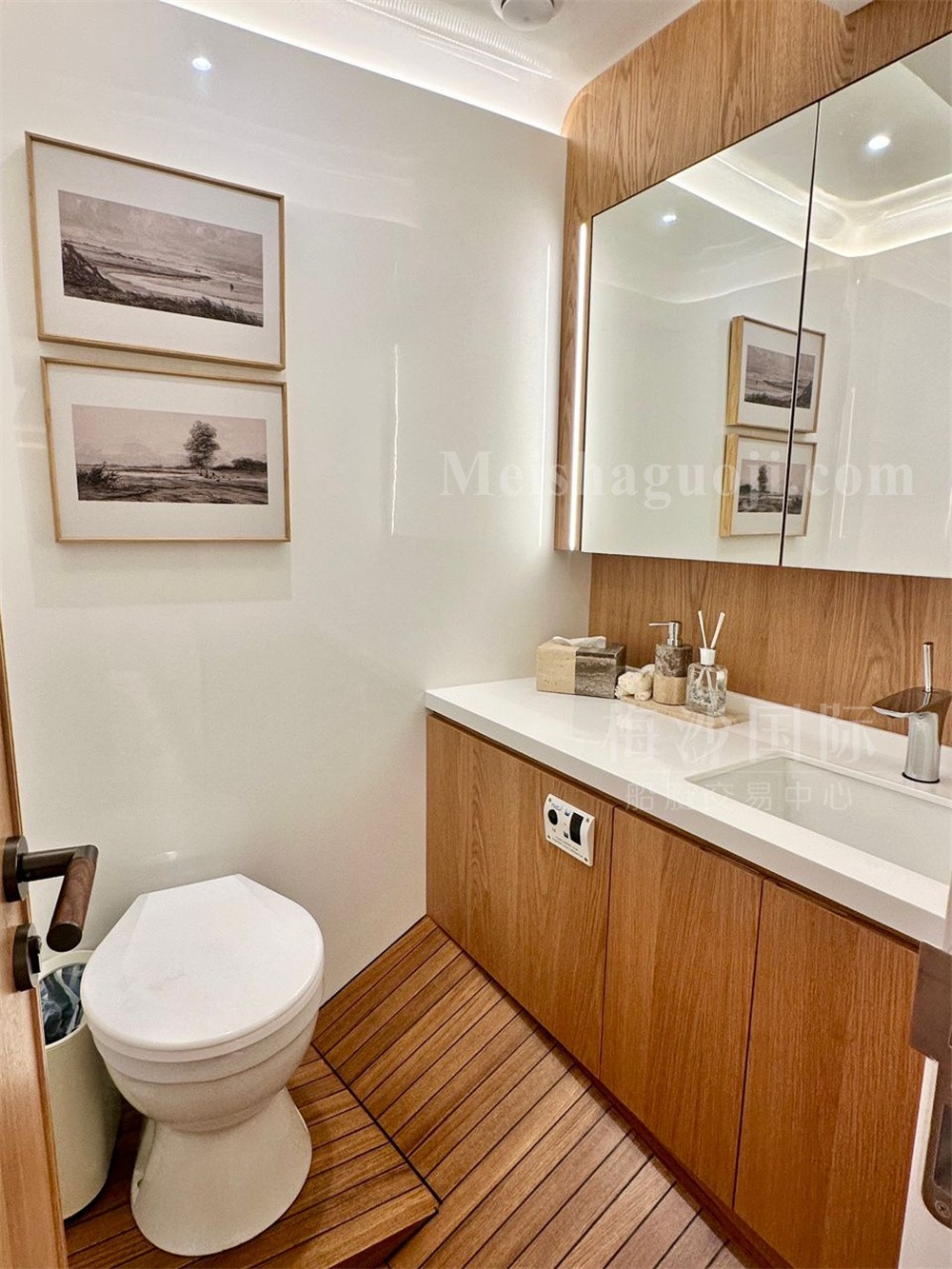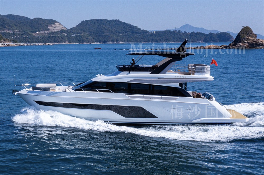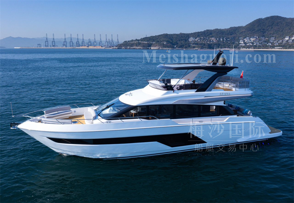 新船现货:AYANA 68尺豪华游艇,长:20.6米,宽:5.53米,燃油舱容:2800升,淡水舱容:1000升,一个房间两个洗手间带超大KTV包房和独立厨房
