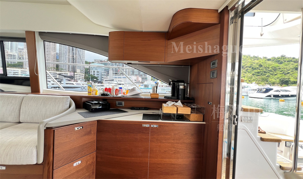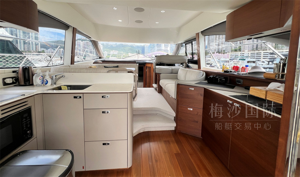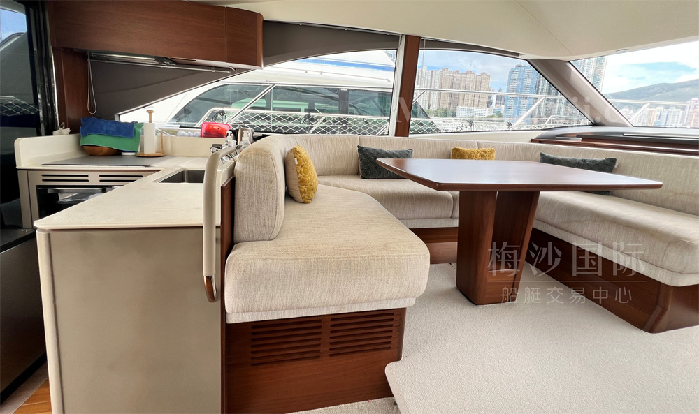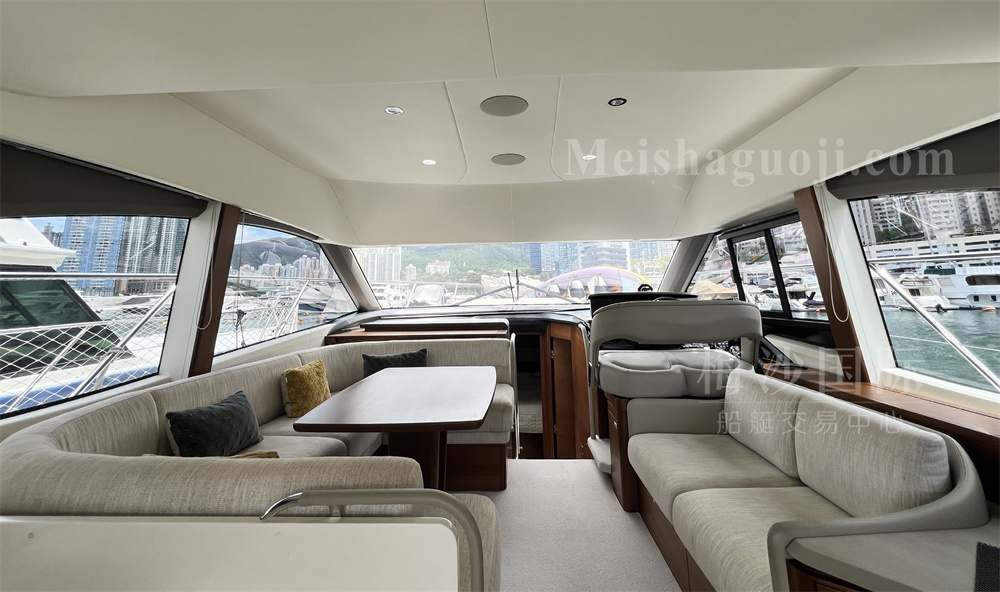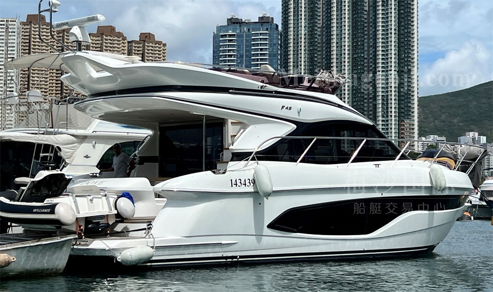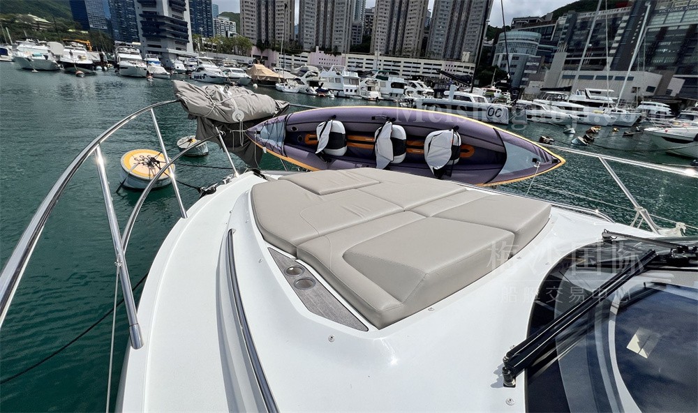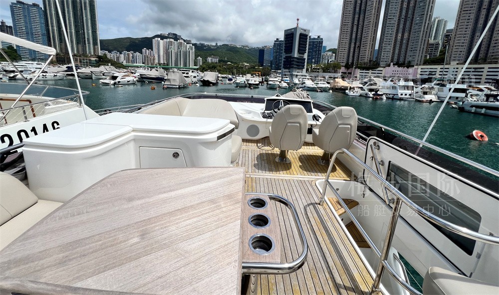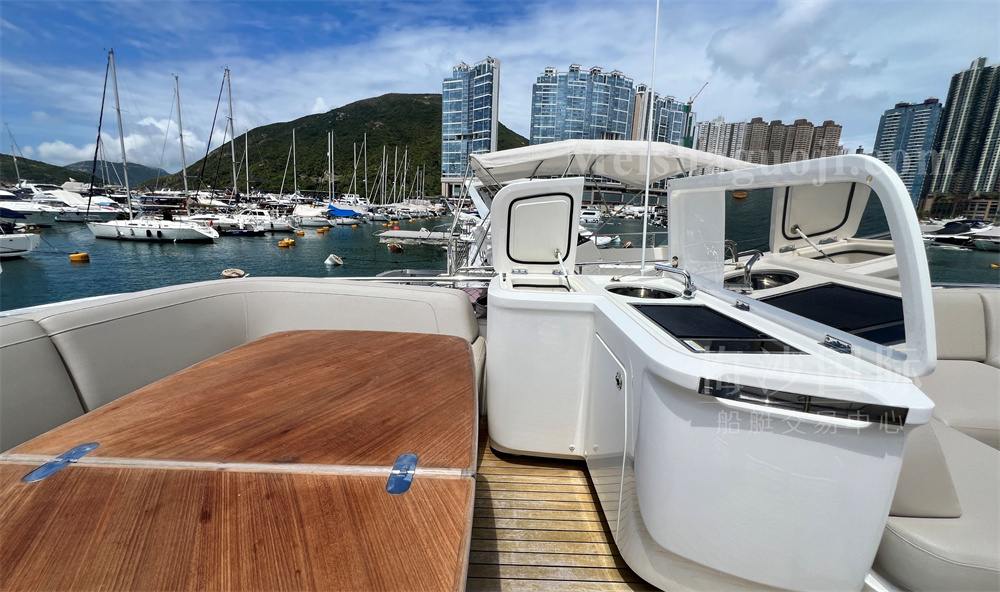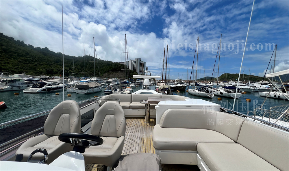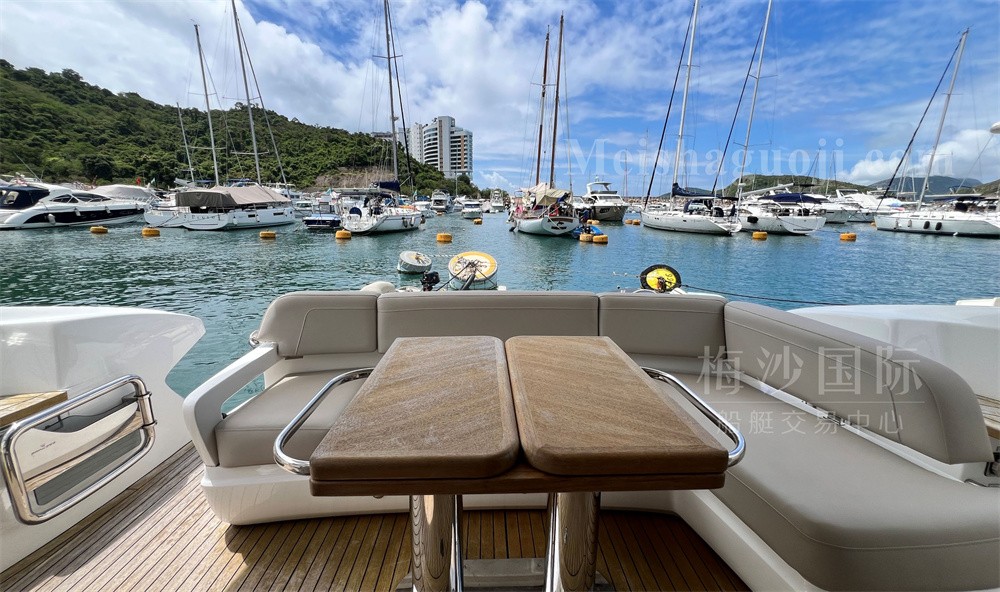 2019年产45尺英国Princess飞桥游艇,长:14.35米,宽:4.25米,两台VOLVO发动机共870匹马力,使用361小时,最高航速可达25节,燃油舱容:1640升,淡水舱容:487升,两个房间两个洗手间。