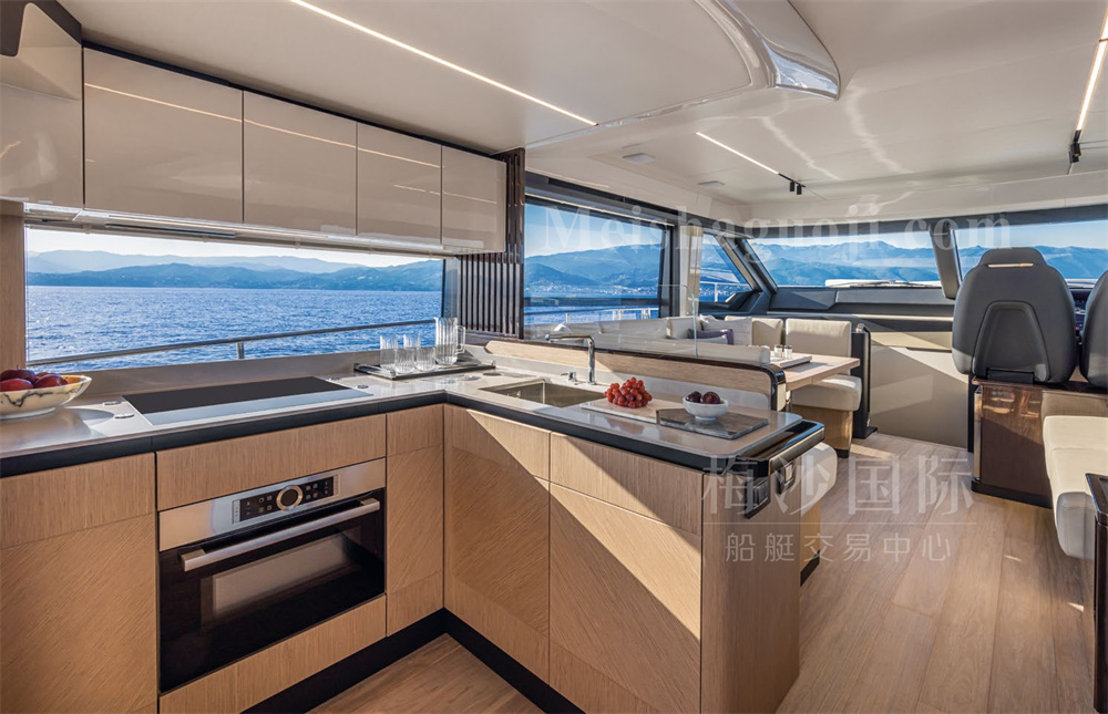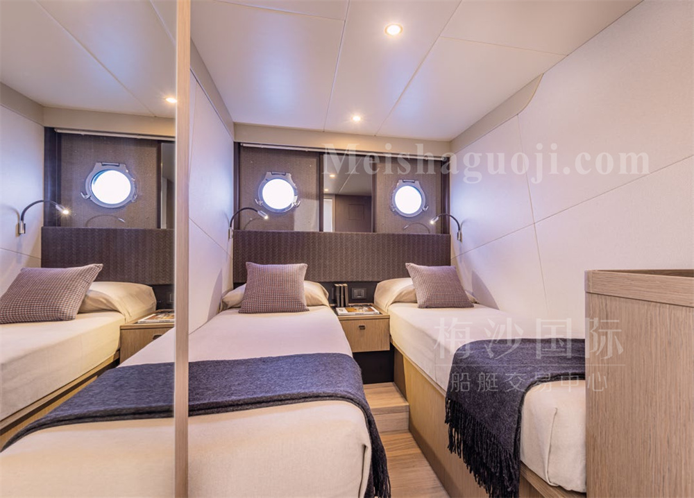新船现货Absolute 56尺意大利飞桥游艇。长:17.64米,宽:4.79米,两台VOLVO发动机共1200匹马力,燃油舱容:2600升,淡水舱容:650升,四个房间四个洗手间,带开放式厨房,定制酒吧,硬顶内置太阳能板,可持续供电。