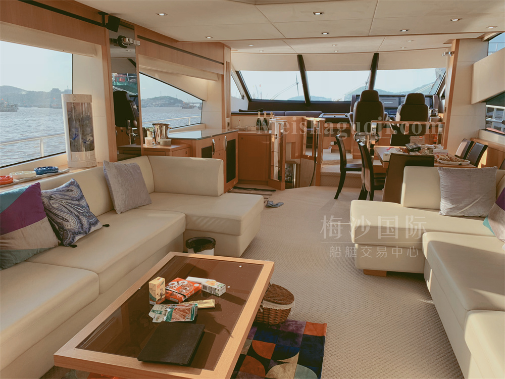 2011年产Sunseeker Manhattan 73尺英国豪华游艇,长:20.82米,宽:5.73米,两台MAN发动机共2720匹马力,使用618小时,燃油舱容:5000升,淡水舱容:1200升,三个房间,加大沙龙区空间宽敞,带陀螺仪和飞桥按摩浴缸。CCS三证齐全,可全国过户。