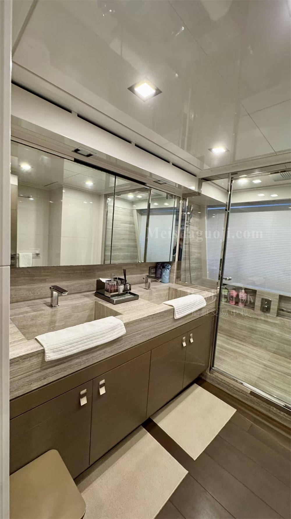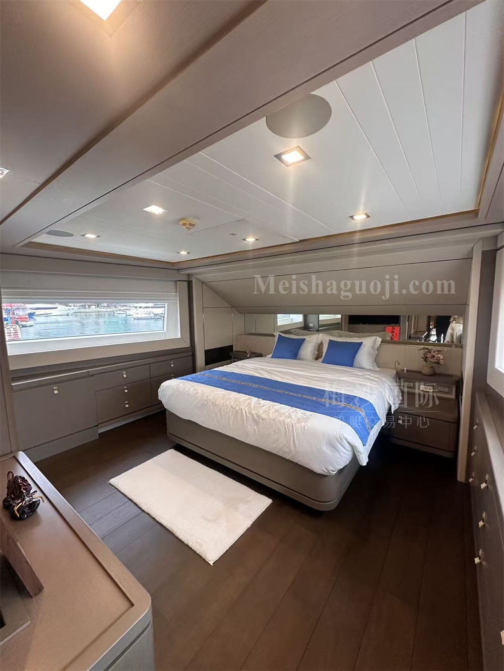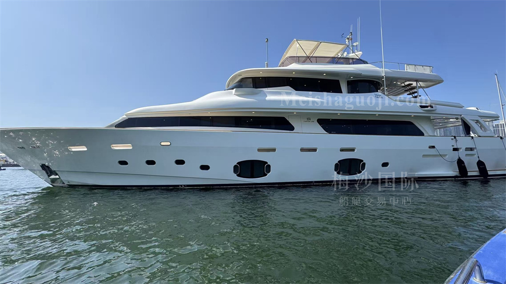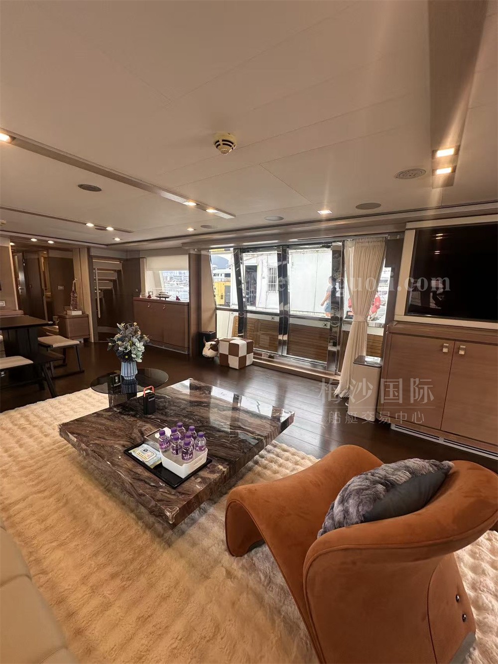 2015年产法拉帝CustomLine Navetta 33米超级游艇,长:33米,宽:7米,吃水:2.57米,两台MAN发动机共2800匹马力,使用600小时,燃油舱容:17000升,淡水舱容:3250升,五个房间六个洗手间,沙龙区空间十分宽敞,内部装修豪华,带超大会客厅和按摩浴缸