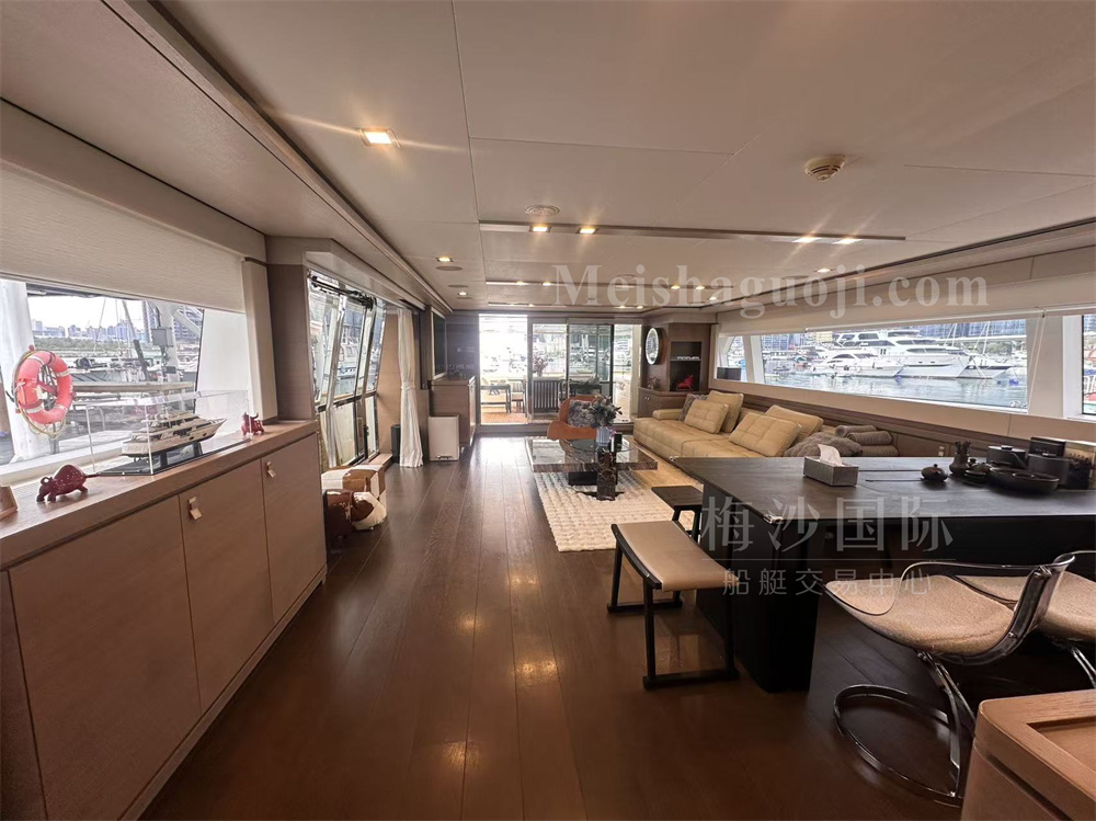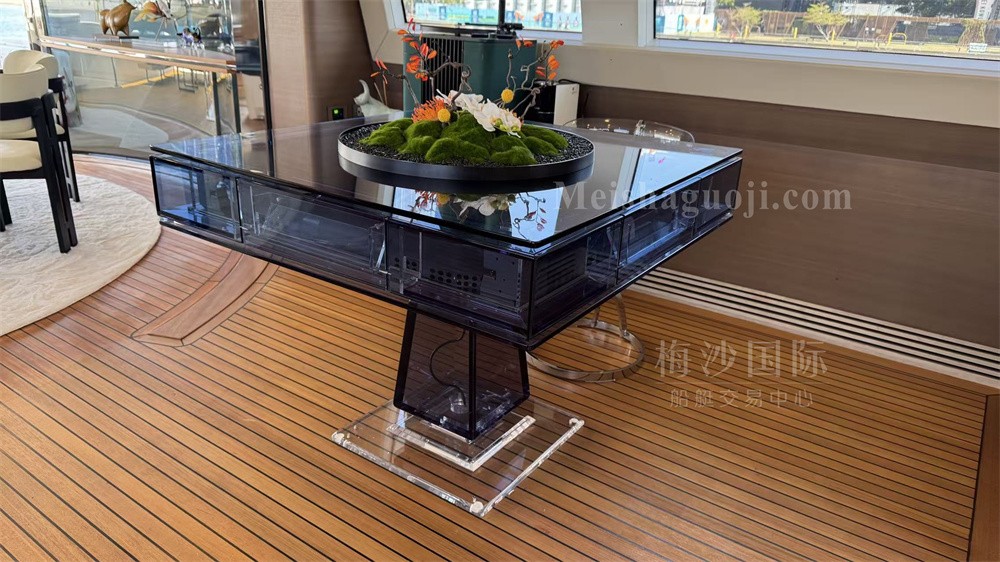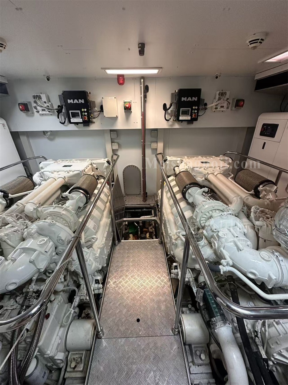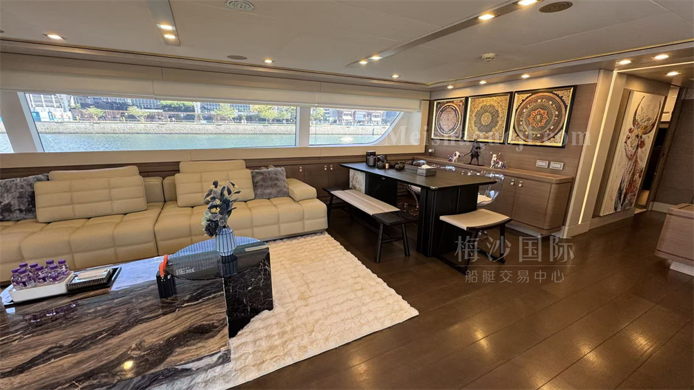 2015年产法拉帝CustomLine Navetta 33米超级游艇,长:33米,宽:7米,吃水:2.57米,两台MAN发动机共2800匹马力,使用600小时,燃油舱容:17000升,淡水舱容:3250升,五个房间六个洗手间,沙龙区空间十分宽敞,内部装修豪华,带超大会客厅和按摩浴缸